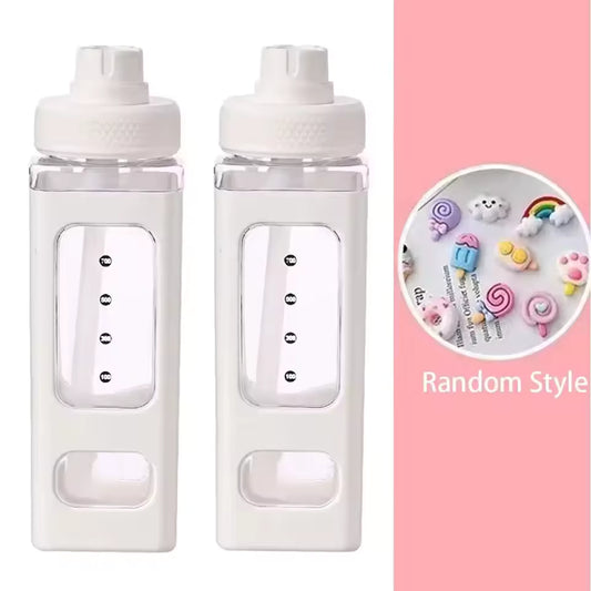 Kawaii Water Bottle with Straw - 3D Cute Bear BPA-Free Square Sippy Cup 700ml