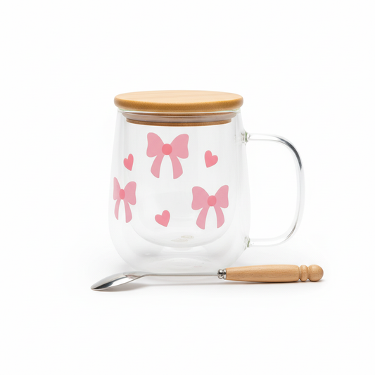 Enregistrer 35%YOLELUX Love Mug 350ml - Bows & Hearts with Lid & Spoon